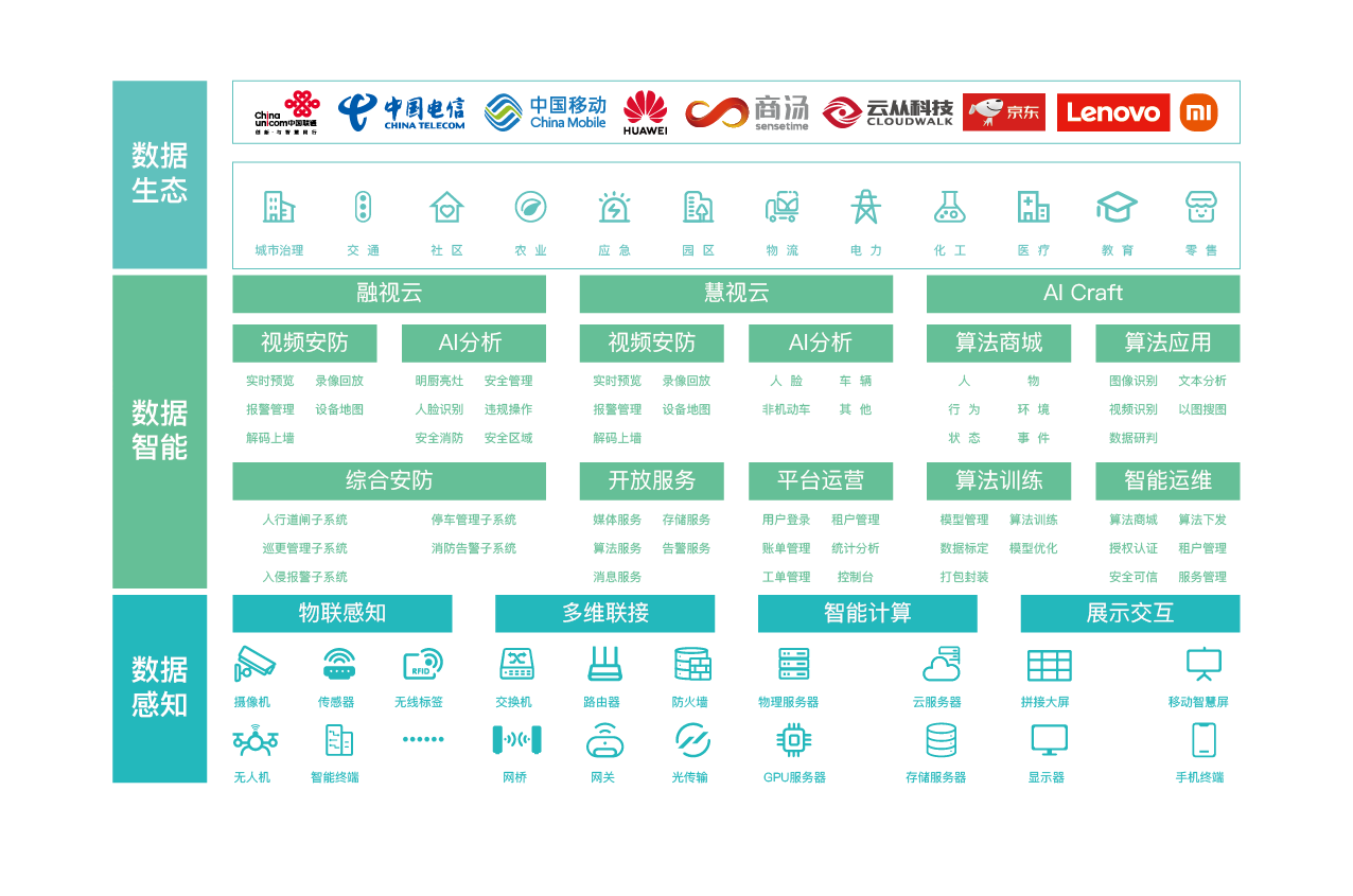 中維世紀依托二十余年的行業沉淀與技術積累,深度把握前沿AI技術發展趨勢,全新升級發布“視頻云大數據”戰略,創新“融視云”、“慧視云”、“AI Craft”三大平臺,將視頻技術與AI、數字孿生、大數據、物聯網等新技術進行融合,夯實“數據感知、數據智能、數據生態”三大數智能力基座,聚焦城市、交通、教育、園區、企業等眾多應用場景,提供AI視頻云方案體系與技術支持服務,實現多層次、多領域的生態場景AI賦能,為城市數字化創新與企業數智化轉型提供數據動力。